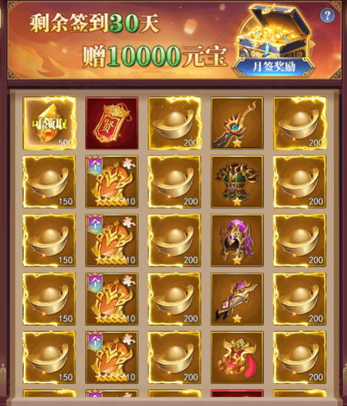 3、每日簽到和每月簽到領(lǐng)取大量元寶和英雄、招募令等豪禮