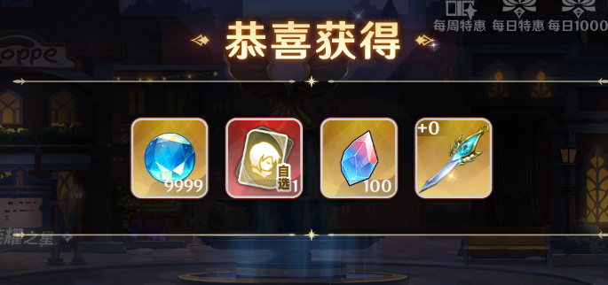 3、上線可領(lǐng)天命英雄自選包2,許愿石頭*100,鉆石*9999,更有金色武器玄波劍 助力開局