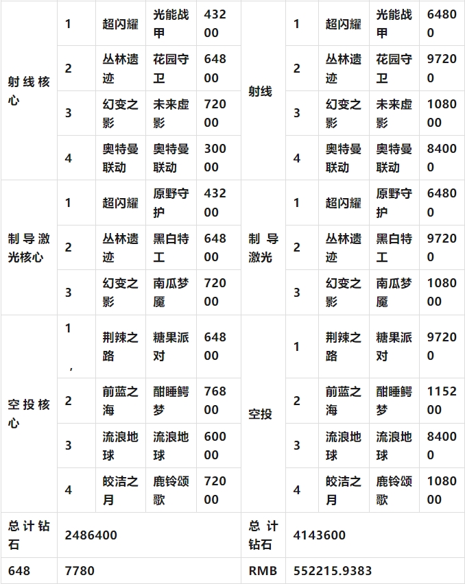 而且時(shí)裝核心中也沒(méi)有計(jì)算炫彩套裝,其次每次活動(dòng)的保底金額都不一樣,有的貴有的低,而且還有提前出貨的可能,所以都是取往期活動(dòng)中的平均值進(jìn)行計(jì)算。