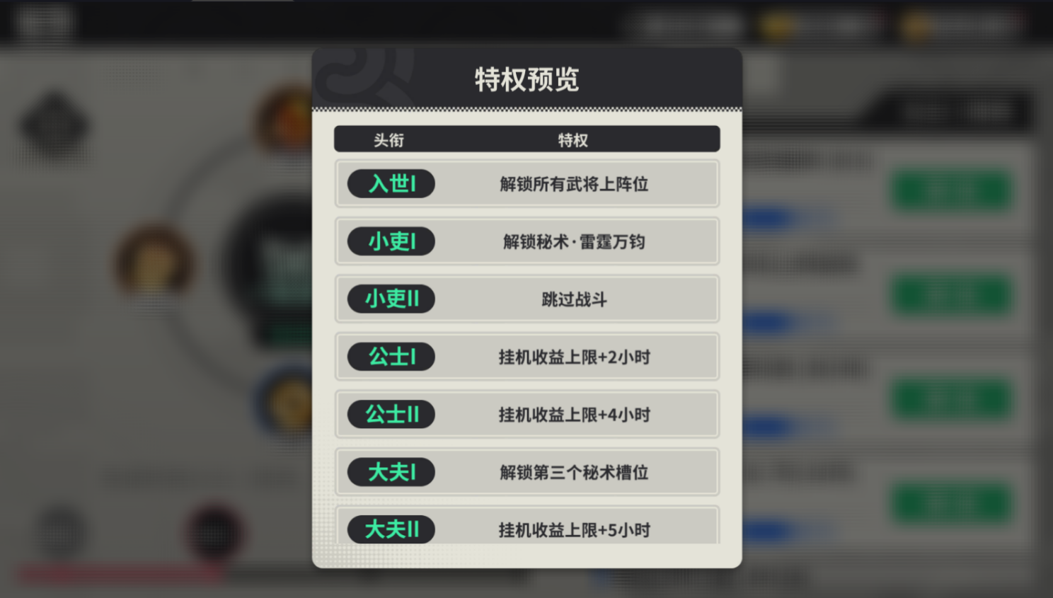 玩家可以消耗道具提升自身的爵位,可以提升自身屬性,對(duì)抗爵位比自己低的玩家,還有特殊的壓制屬性