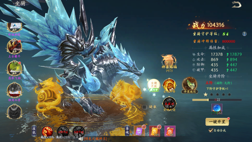 2、坐騎:使用坐騎進階丹來提升坐騎的品質來提高戰(zhàn)力。